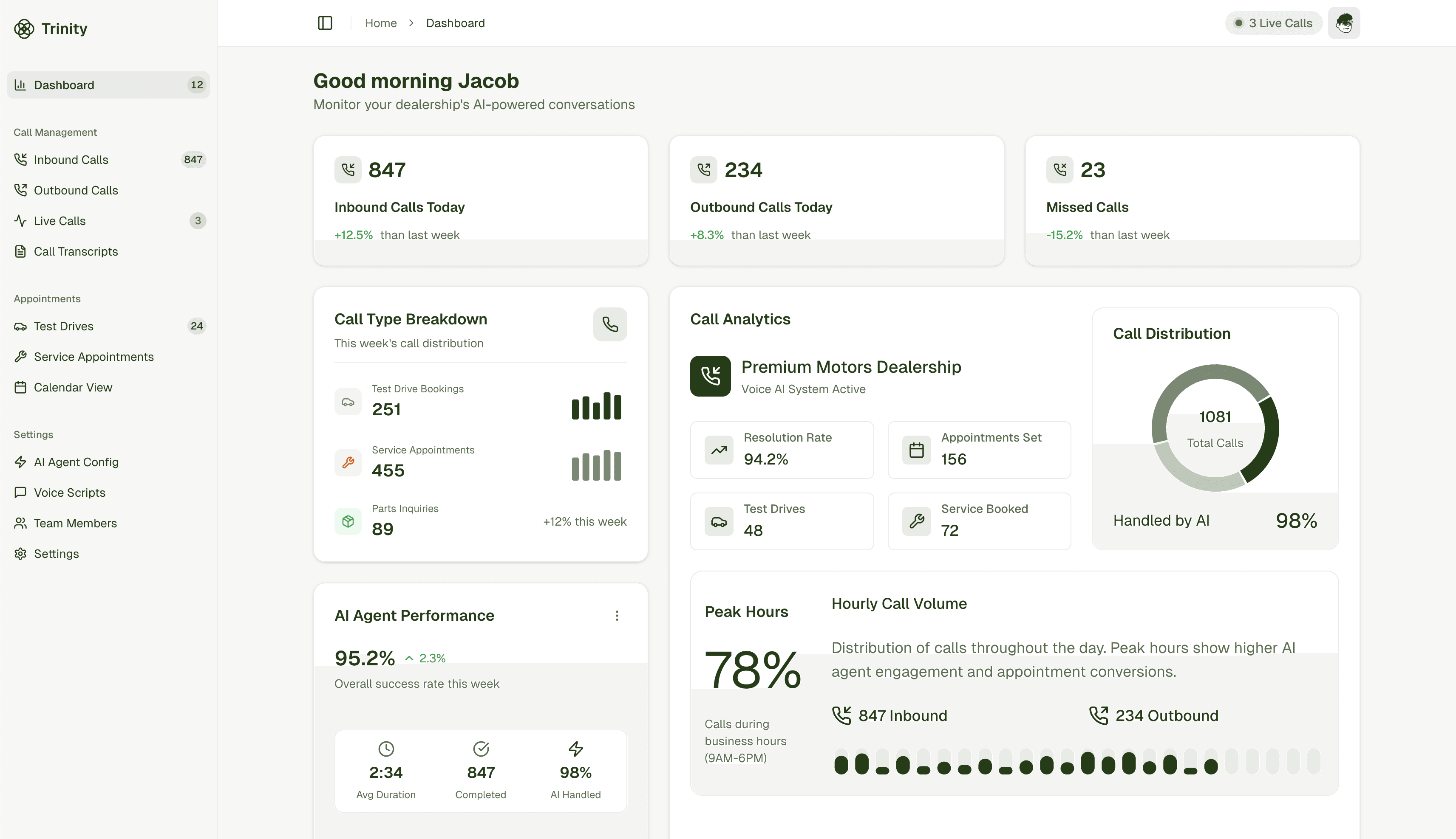 Let's connect to see how we can help your dealership or feel free to contact us at founders@trinityapp.ai