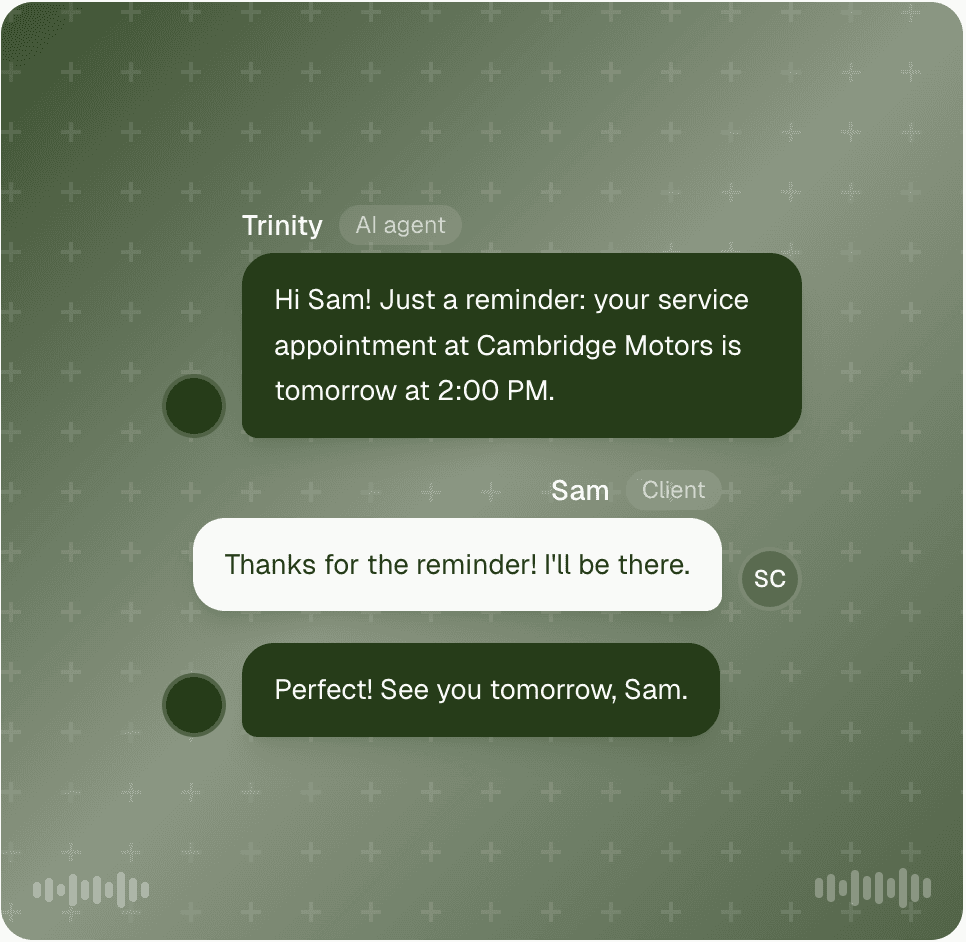 Reduce no-shows and keep your bays full with automated texts and calls that remind customers of upcoming appointments.